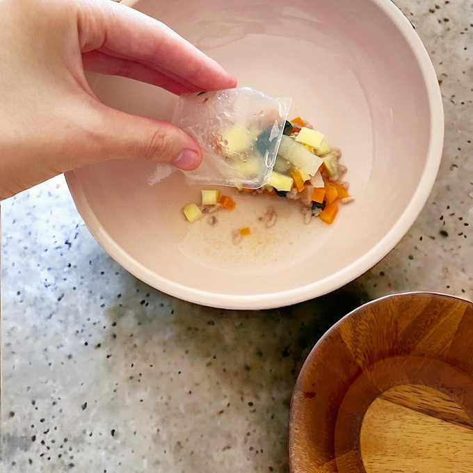 ※水分を多めに混ぜてスープとして、間食のおやつとして与えるのもおすすめです。