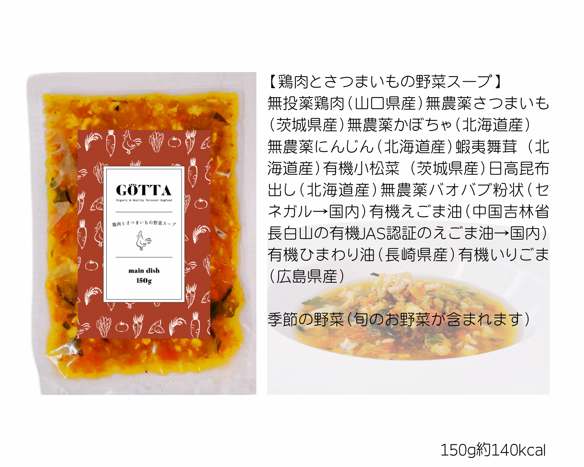 無投薬鶏肉(山口県産)無農薬さつまいも(茨城県産)無農薬かぼちゃ(北海道産)